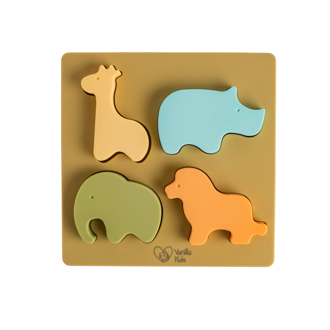 Puzzle din silicon alimentar cu 4 piese în formă de animale , Vanilla Kids