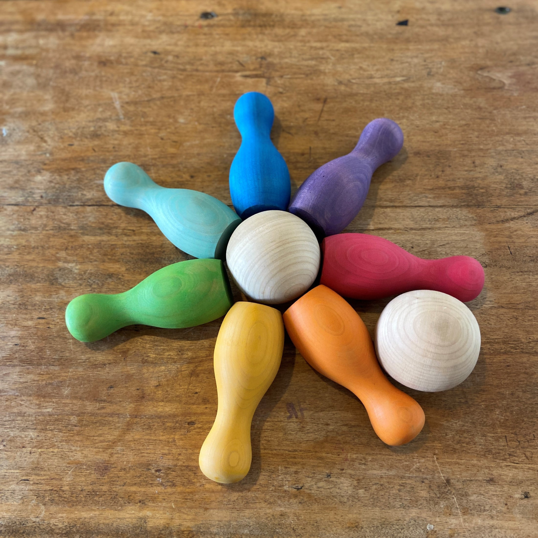 Set de bowling din lemn cu 7 popice și 2 mingi, Vulp's - Jucărie Puzzle