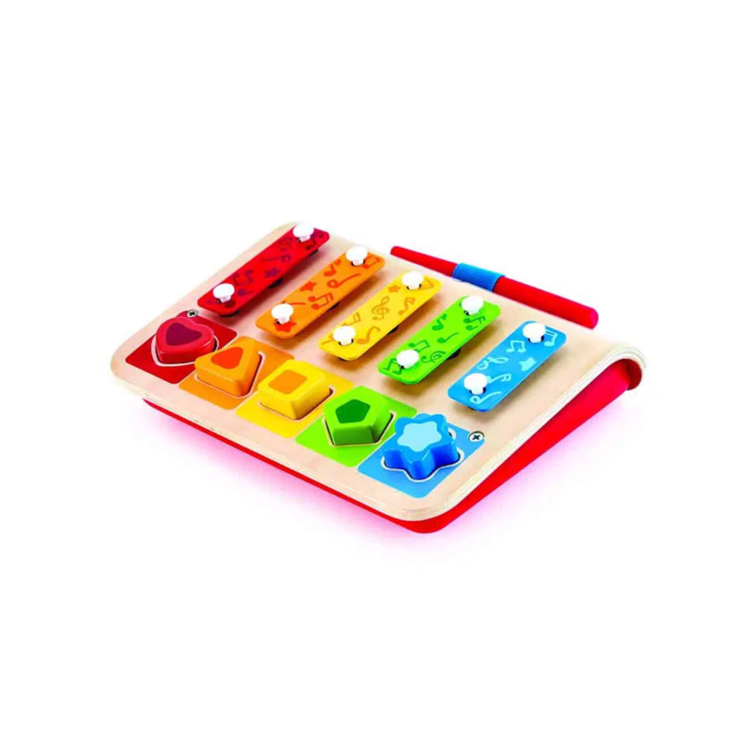 Puzzle xilofon din lemn cu 5 forme geometrice , Hape - Jucărie cu Activități